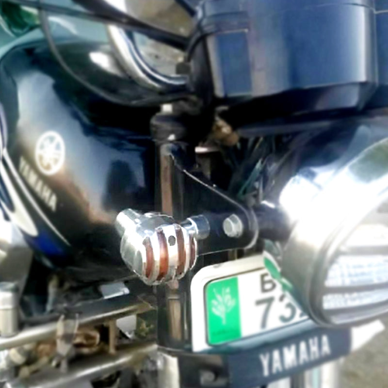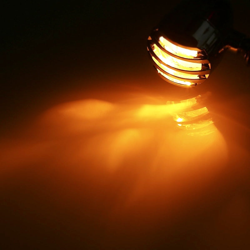 4 Pcs 12V Universal Motorcycle Grill Turn Signal Lights – Amber LED & Chrome Body Indicators