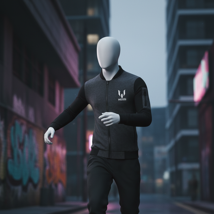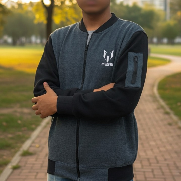 - Charcoal Grey Messi printed zipper jacket for men and boys